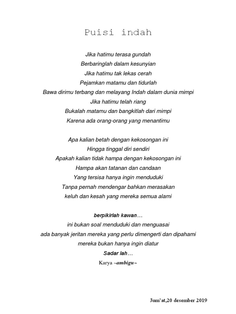 Sesungguhnya Allah swt telah mencipta dunia ini dengan pelbagai isi kandungannya. Bukalah matamu selebar mungkin lihatlah dunia ini selalu menyambutmu dgn kebahagian. 50 5 1.